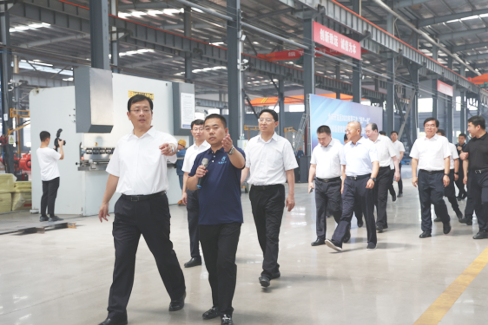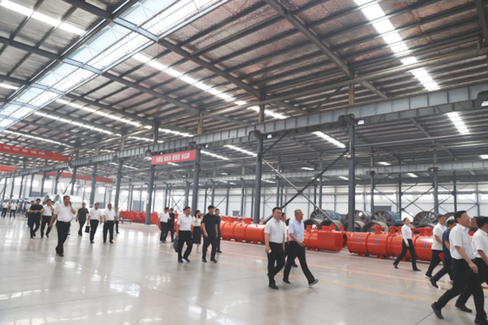 仪式结束后,在开发区及公司领导的陪同下,丁书记储市长一行参观了生产车间。运安风机董事长仝鸿江向大家详细介绍了风机的用途、分类,及广受市场青睐的智能低噪音风机、矿井主通风机不停风倒机系统等新研发产品;仝总还对风机制造的生产工艺流程、企业发展方向及前景等方面作了详细汇报。