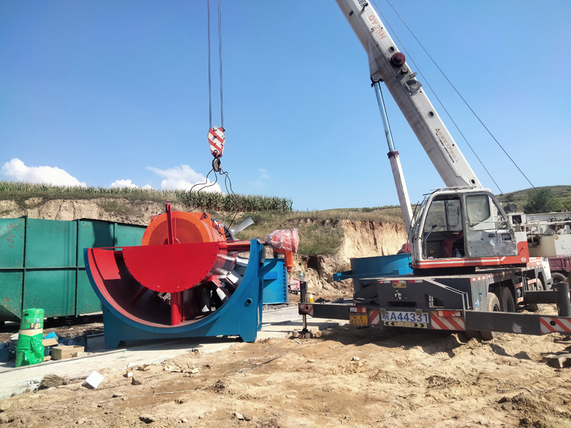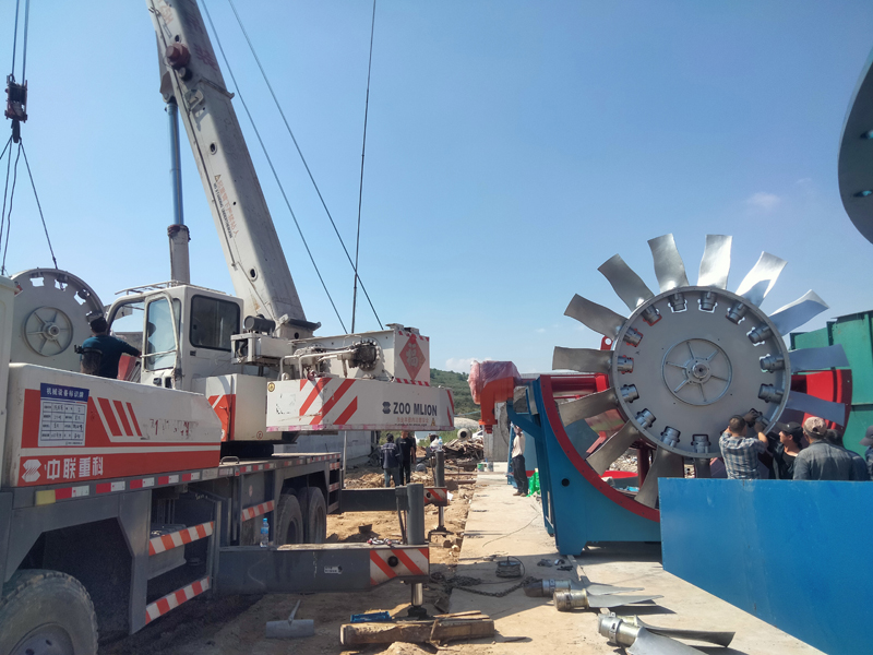 该系列风机由于采用直联式结构,对安装基础的精度要求不高。即使由于地面下陷,风机产生一定的倾斜(一般不超过15°),也能正常运转,不会影响矿山的正常安全生产;同时该系列风机能直接采用反转反风,反风量≥60%,超过《煤矿安全规程》中第122条要求(当风流方向改变后,主要通风机的供风风量不应小于正常供风量的40%),无需修反风道,减少了安装费用。简单地说,安装风机时,只需在坚实的地面上铺设两根道轨将风机置放其上,并使风机一端与矿井通风口连接即可。由于风机采用电机直联叶轮的结构形式,所以维护简便,一般只要按要求定时定量给电机注油就可以了。